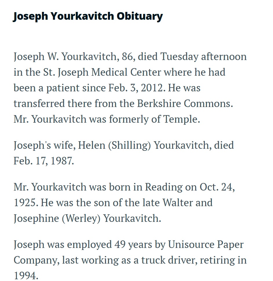 Joseph Yourkavitch 1925 -2012