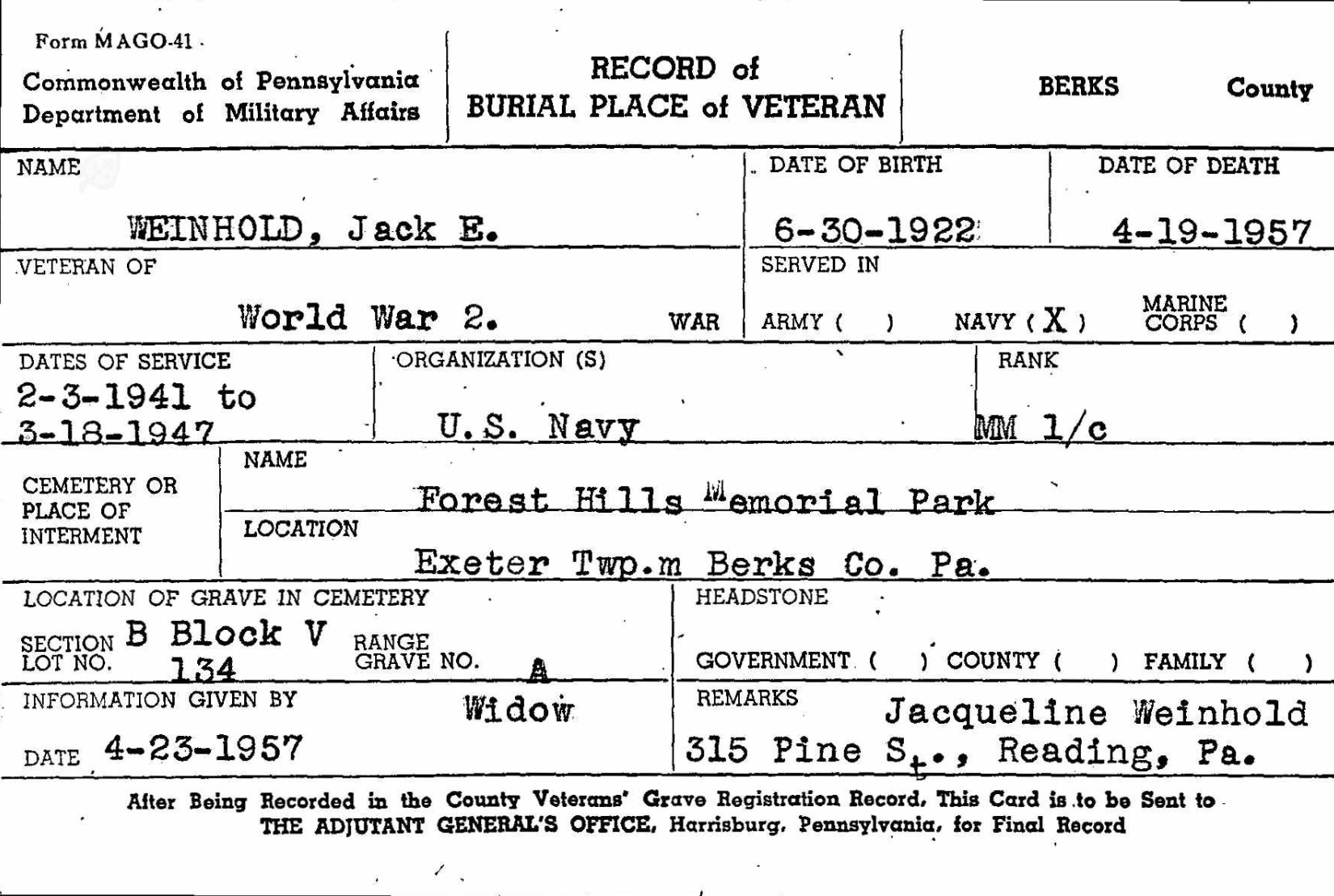 6-30-1922 4-19-1957